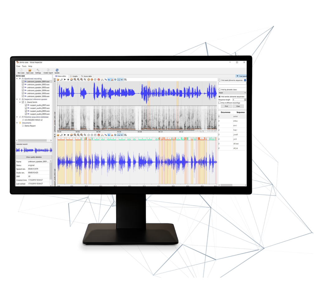 Phonexia Voice Inspector, polis ve adli tıp uzmanlarının iki ses kaydını karşılaştırarak doğrulamasını ve birden fazla ses dosyasında konuşmacı tespitini hızlı ve güvenilir şekilde yapmasını sağlayan gelişmiş bir ses karşılaştırma çözümüdür.
