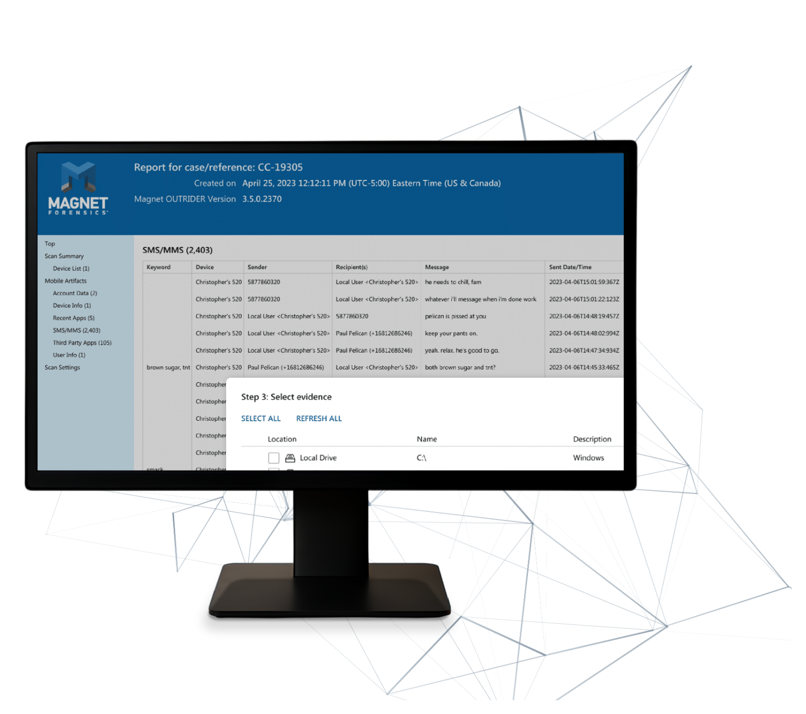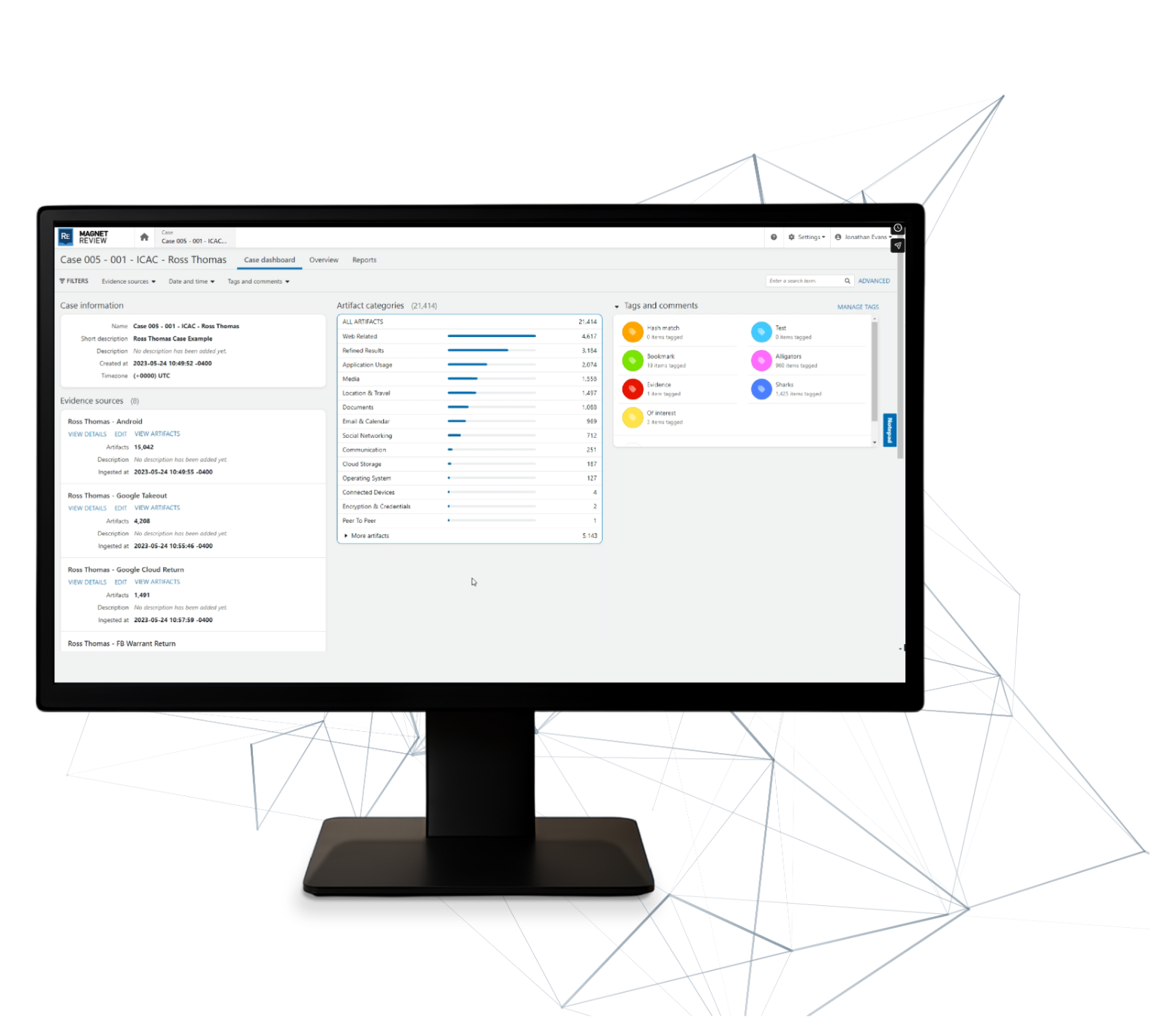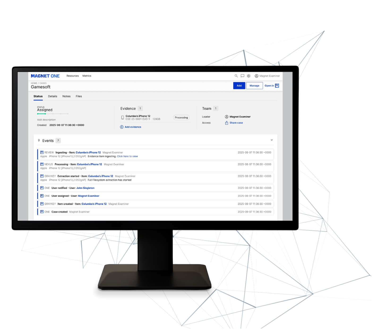 Magnet Axiom, modern dijital adli bilişim araştırmalarında, mobil cihazlar, bilgisayarlar, bulut servisleri ve araçlardan elde edilen kanıtları tek bir dava dosyasında birleştirerek kurtarma, analiz ve raporlama işlemlerini gerçekleştiren kapsamlı bir dijital araştırma platformudur. Kullanıcılar, tüm kanıtları bütünsel olarak inceleyebilir ve dava ile ilişkilerini hızlı ve kolay bir şekilde görebilir. Platform, en...